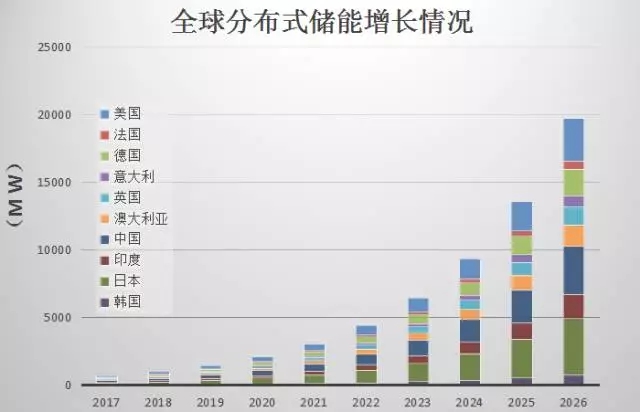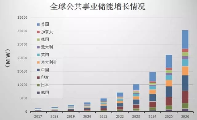 全球儲能產(chǎn)業(yè)增速加快,政策驅(qū)使的國家增速最為明顯。根據(jù)中國電池聯(lián)盟統(tǒng)計(jì)的最新數(shù)據(jù)。未來10年全球儲能領(lǐng)域?qū)⒁娮C強(qiáng)勁增長,到2026年增長的規(guī)模將達(dá)到令人難以想象的50吉瓦。其中,全球公用事業(yè)規(guī)模儲能容量年增量將從2017年的1159兆瓦增至2026年的30473兆瓦,而同期分布式儲能系統(tǒng)年增量從684兆瓦增至19700兆瓦。儲能產(chǎn)業(yè)主要應(yīng)用領(lǐng)域?yàn)椋杭彝ァ⑸逃脙δ?、移動電源儲能、電網(wǎng)儲能、分布式發(fā)電等領(lǐng)域。