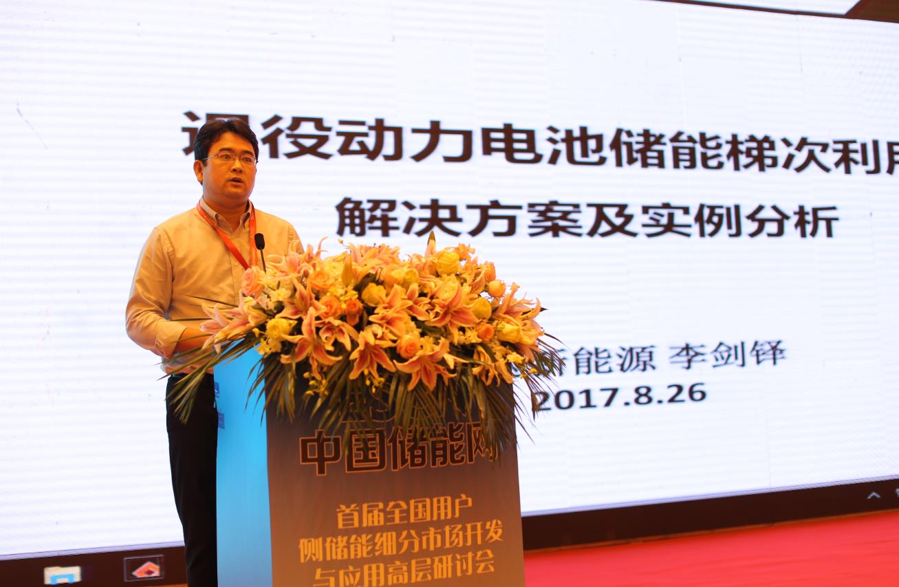 中國(guó)儲(chǔ)能網(wǎng)訊:8月25-26日,首屆全國(guó)用戶(hù)側(cè)儲(chǔ)能細(xì)分市場(chǎng)開(kāi)發(fā)與應(yīng)用高層研討會(huì)在江蘇無(wú)錫太湖飯店召開(kāi)。會(huì)議由江蘇省電機(jī)工程學(xué)會(huì)、國(guó)網(wǎng)江蘇省電力公司電力科學(xué)研究院、全國(guó)微電網(wǎng)與分布式電源并網(wǎng)標(biāo)準(zhǔn)化技術(shù)委員會(huì)、中國(guó)化學(xué)與物理電源行業(yè)協(xié)會(huì)儲(chǔ)能應(yīng)用分會(huì)聯(lián)合主辦。中恒電氣上海煦達(dá)新能源科技有限公司受邀與近400位產(chǎn)學(xué)研高層共同探討儲(chǔ)能發(fā)展未來(lái)。公司總經(jīng)理李劍鐸在會(huì)上就退役動(dòng)力電池儲(chǔ)能梯次利用問(wèn)題發(fā)表演講。