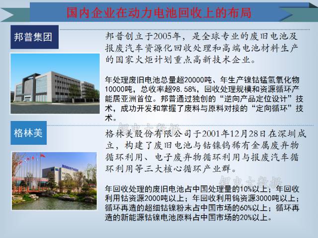 本文主要分析了目前國內(nèi)動(dòng)力電池回收市場的現(xiàn)狀,并對(duì)當(dāng)前國內(nèi)企業(yè)對(duì)于動(dòng)力電池回收上的布局進(jìn)行盤點(diǎn)與解說。
