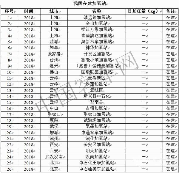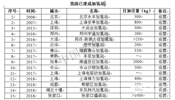 據(jù)內(nèi)部統(tǒng)計(jì)資料顯示,截止2018年2月份,我國已建成、在用及在建的加氫站共有33座;截止2018年7月份,我國已建成、在用及在建的加氫站共有41座,分別位于北京、上海、江蘇、大連、安徽、河南、廣東、成都等地,全國各地很多城市也都正在規(guī)劃建設(shè)加氫站。