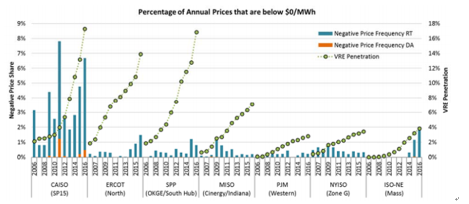 Pfeifenberger說,當(dāng)系統(tǒng)達(dá)到靈活性限制時(shí),通常會出現(xiàn)負(fù)價(jià)格。