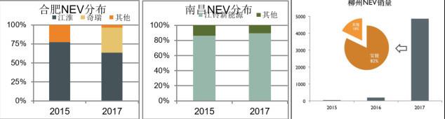 南昌為江鈴控股有限公司總部所在地;2017年南昌NEV銷量中江鈴新能源品牌銷量三年占比超過(guò)85%;南昌市推出了一系列發(fā)展新能源汽車發(fā)展的政策,如不限號(hào)行駛、停車費(fèi)減半、免車購(gòu)稅等系列優(yōu)惠政策,但其新能源補(bǔ)貼政策的地方保護(hù)色彩濃厚,限制了其他品牌車輛的推廣;2016年南昌市財(cái)政局公布的新能源汽車推廣應(yīng)用省級(jí)補(bǔ)助資金共1765萬(wàn)元,其中,江鈴控股有限公司獲得1729萬(wàn)元,江鈴集團(tuán)晶馬汽車有限公司獲得36萬(wàn)元補(bǔ)助。