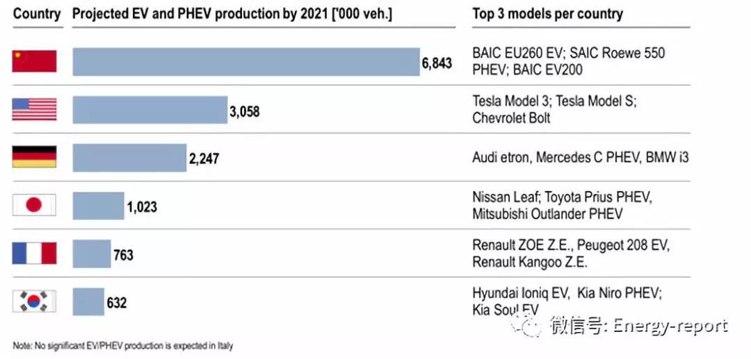 圖6:在電動(dòng)汽車/混合動(dòng)力電動(dòng)汽車生產(chǎn)方面,中國(guó)保持著明顯的領(lǐng)先地位美國(guó)位居第二,德國(guó)占了一些優(yōu)勢(shì)