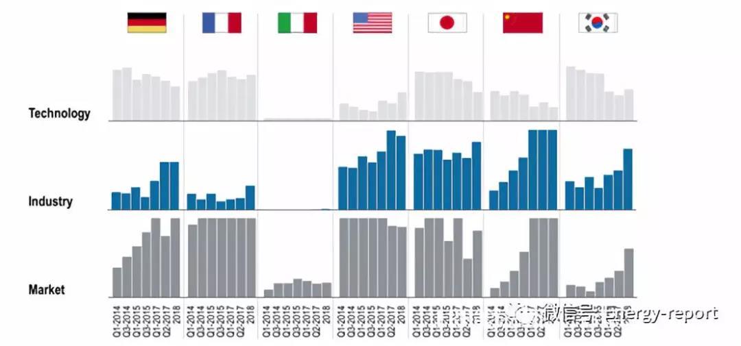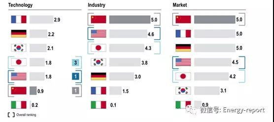 在2018年的電動(dòng)移動(dòng)性指數(shù)中,中國(guó)仍處于領(lǐng)先地位。盡管法國(guó)在技術(shù)方面占領(lǐng)優(yōu)勢(shì),但中國(guó)在工業(yè)和市場(chǎng)動(dòng)態(tài)方面繼續(xù)領(lǐng)先。(圖2)