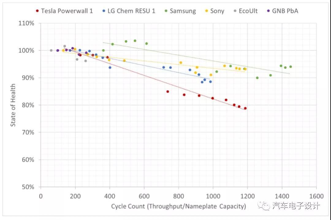 1100次的時(shí)候,Tesla的Power wall進(jìn)入80%的以下區(qū)間