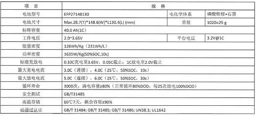 這里我選擇磷酸鐵鋰電池,雖然在技術(shù)端,各種電池技術(shù)還在較量,勝負(fù)未分,但在應(yīng)用端,鋰電池出現(xiàn)了倒掛現(xiàn)象,經(jīng)過國家政策的推動,鋰電池產(chǎn)業(yè)很快經(jīng)過了規(guī)模化洗禮,有了激烈競爭,更重要的是價格正在飛速下降,超出了預(yù)期。相較于三元鋰電,鐵鋰的價格丶安全性以及循環(huán)特性占優(yōu),相較于鈦酸鋰,鐵鋰價格和能量密度占優(yōu)。我以力信能源40Ah儲能專用電芯作為模型設(shè)計(jì)依據(jù),數(shù)據(jù)指標(biāo)如下: