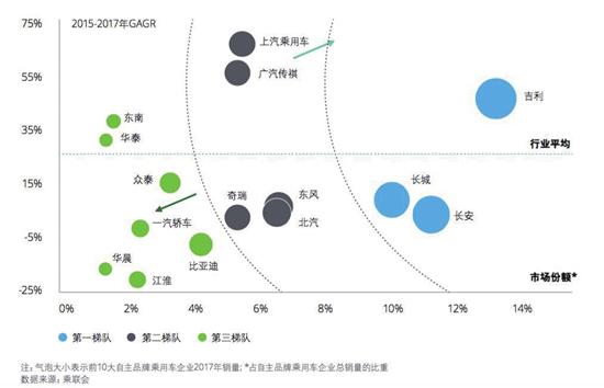 中國儲(chǔ)能網(wǎng)訊:如果把中國汽車品牌(乘用車)分成幾個(gè)梯隊(duì),那么從規(guī)模量級(jí)看,已經(jīng)跨過100萬輛門檻的吉利汽車、長城汽車和長安汽車屬于“第一軍團(tuán)”;年銷介于50萬輛到100萬輛之間的上汽集團(tuán)、廣汽集團(tuán)、奇瑞汽車、北汽集團(tuán)和東風(fēng)汽車處在“第二陣營”;低于50萬輛的眾泰汽車、東南汽車、一汽轎車、江淮汽車、華晨、比亞迪等“第三梯隊(duì)”,則面臨前所未有的巨大壓力。