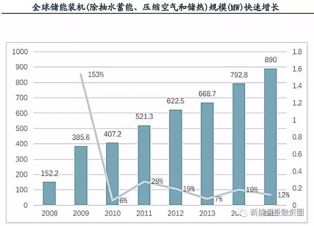從全球角度看,自2008年以來,儲能進(jìn)入了快速成長階段,裝機(jī)規(guī)模以每年20%左右的速度快速增長。我國自2013年以來,隨著分布式光伏裝機(jī)容量快速增長,以及2015年下半年以來電力體制改革加速進(jìn)行,部分地區(qū)電價(jià)機(jī)制更加靈活,用戶側(cè)使用儲能能夠獲得即時(shí)且明顯的經(jīng)濟(jì)效益,用戶側(cè)儲能裝機(jī)容量快速增長。