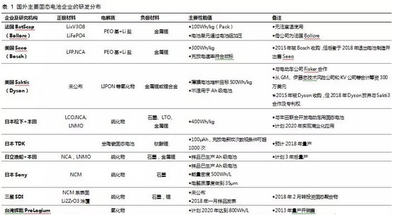 為使鋰電池具有更高的能量密度和更好的安全性,國(guó)外鋰離子電池廠商和研究院所在固態(tài)鋰電方面開展了大量的研發(fā)工作。日本更是將固態(tài)電池研發(fā)提升到國(guó)家戰(zhàn)略高度,2017年5月,日本經(jīng)濟(jì)省宣布出資16億日元,聯(lián)合豐田、本田、日產(chǎn)、松下、GS湯淺、東麗、旭化成、三井化學(xué)、三菱化學(xué)等國(guó)內(nèi)頂級(jí)產(chǎn)業(yè)鏈力量,共同研發(fā)固態(tài)電池,希望2030年實(shí)現(xiàn)800公里續(xù)航目標(biāo)。