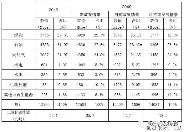 表2 IEA 2040年全球一次能源需求預(yù)測(cè)