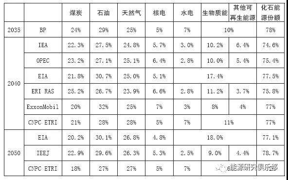 (一)各機(jī)構(gòu)對(duì)2040年世界能源格局的判斷基本一致