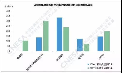 從應(yīng)用分布上看,新增投運(yùn)項(xiàng)目全部應(yīng)用在集中式可再生能源并網(wǎng)、輔助服務(wù)和用戶側(cè)領(lǐng)域。其中,用戶側(cè)領(lǐng)域的功率規(guī)模最大,超過(guò)70MW,輔助服務(wù)領(lǐng)域的同比增速最大,接近1000%。