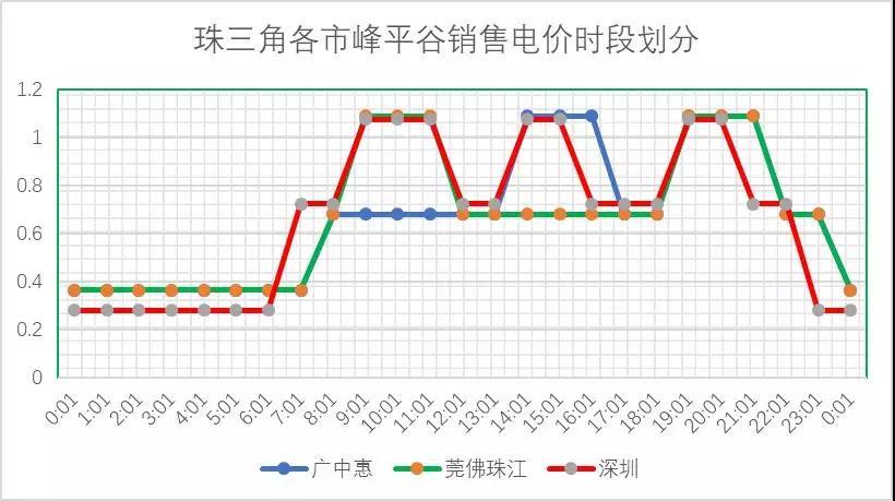 廣東省內(nèi)有3峰3谷,其中每個(gè)城市的峰谷電價(jià)的時(shí)間是不一樣的,只有深圳是完全按照3峰3谷實(shí)施的峰谷電價(jià)。