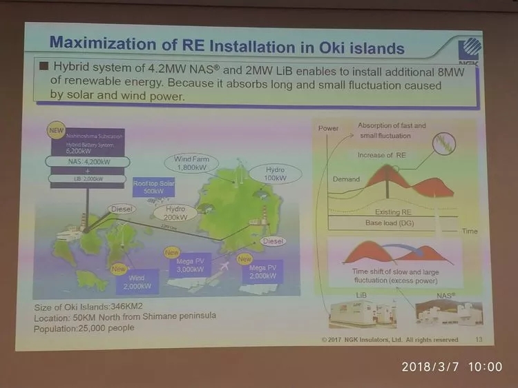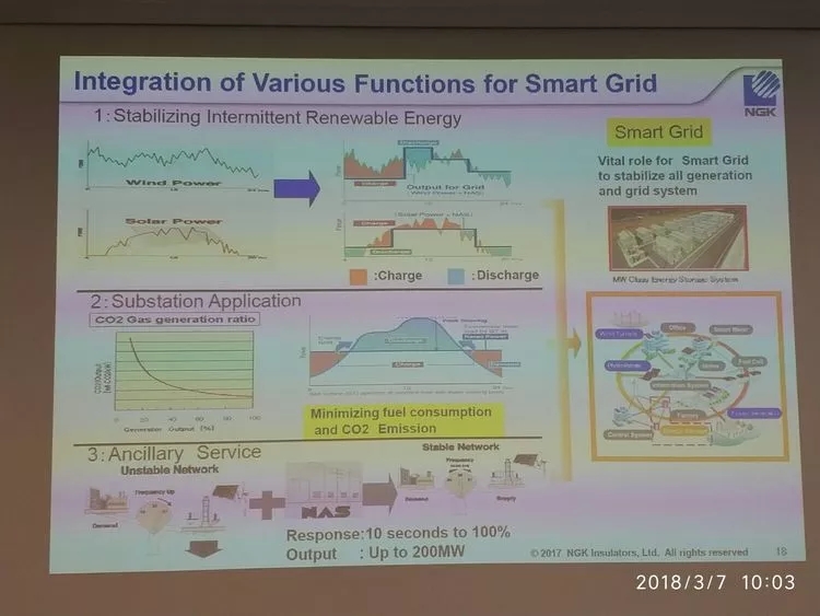NGK insulators公司的系統(tǒng)設計經理Hiroyuki Abe上午在亞洲開發(fā)銀行研究所給我們講解了PPT