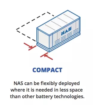 NAS電池可實現(xiàn)連續(xù)供電,用太陽能供電6-10小時,NAS電池以額定功率的三分之一供電14-18小時,額定輸出為1/3。