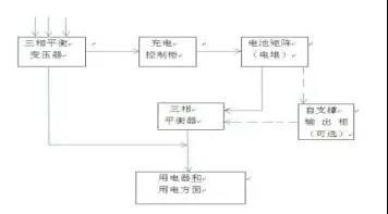 圖中的《自支撐輸出柜》是可選的,如采用,可以增加儲(chǔ)能電池矩陣的輸出能量。