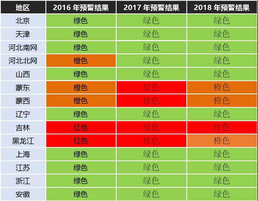 從2016-2018年三年的監(jiān)測結(jié)果看來,河北北網(wǎng)風電開發(fā)條件好轉(zhuǎn),由橙色轉(zhuǎn)為綠色并連續(xù)兩年保持;蒙東、蒙西由橙色轉(zhuǎn)為紅色,表明上述兩地區(qū)風電投資條件轉(zhuǎn)差,但2018年轉(zhuǎn)為橙色,表明投資環(huán)境有所好轉(zhuǎn);而吉林、甘肅等地區(qū)連續(xù)三年作為紅色預(yù)警地區(qū),即在暫停核準的情況下這些地區(qū)風電開發(fā)條件仍沒得到明顯改善。此外,黑龍江風電開發(fā)條件有所好轉(zhuǎn),由紅色轉(zhuǎn)為橙色,寧夏則由紅色轉(zhuǎn)為綠色。