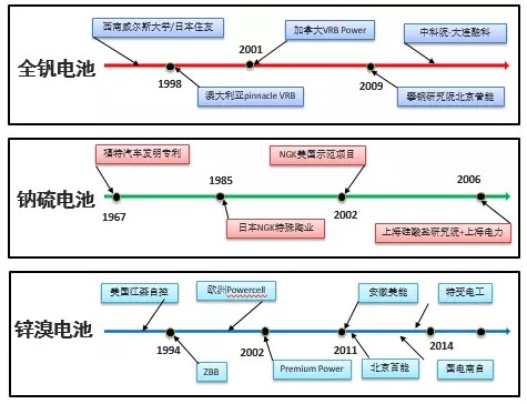 VRB公司購買西南威爾斯大學的專利技術(shù),開始釩電池應用研究,01年加拿大VRBPower收購澳大利亞pinnacleVRB,繼續(xù)釩電池商業(yè)化研究,并推出相關(guān)模塊化產(chǎn)品,09年,北京普能收購加拿大VRB,借助攀鋼釩礦優(yōu)勢,試圖降低成本,以實現(xiàn)商業(yè)化,并在2011年拿到張北工程1MW儲能示范項目。