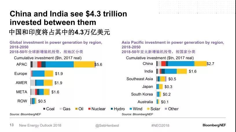 從地域上說,亞太地區(qū)在全球投資里的占比是非常大的。而在亞太地區(qū),中國和印度又是占據(jù)絕對比例的。這背后反映的是這兩個(gè)地區(qū)用電需求的增長。