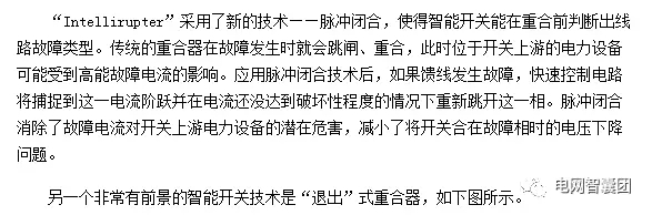 “退出”式重合器適用于易遭受瞬時(shí)故障的橫向電路。這種重合器在斷開電路后會(huì)重合,而不是讓熔斷器直接熔斷,因此可避免長(zhǎng)時(shí)間停電。