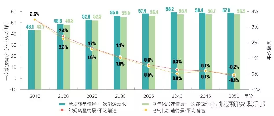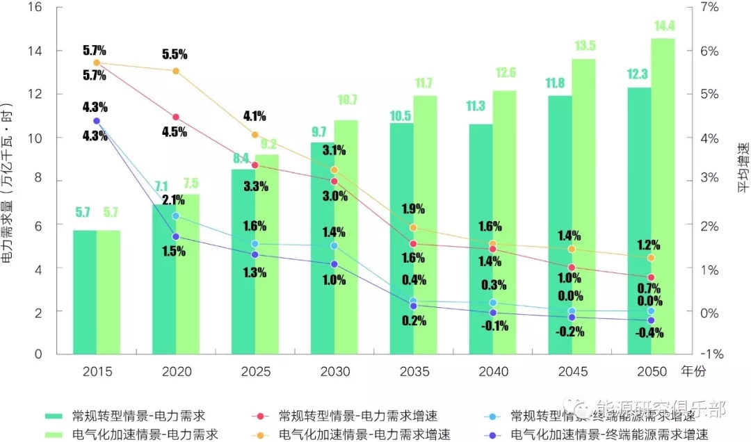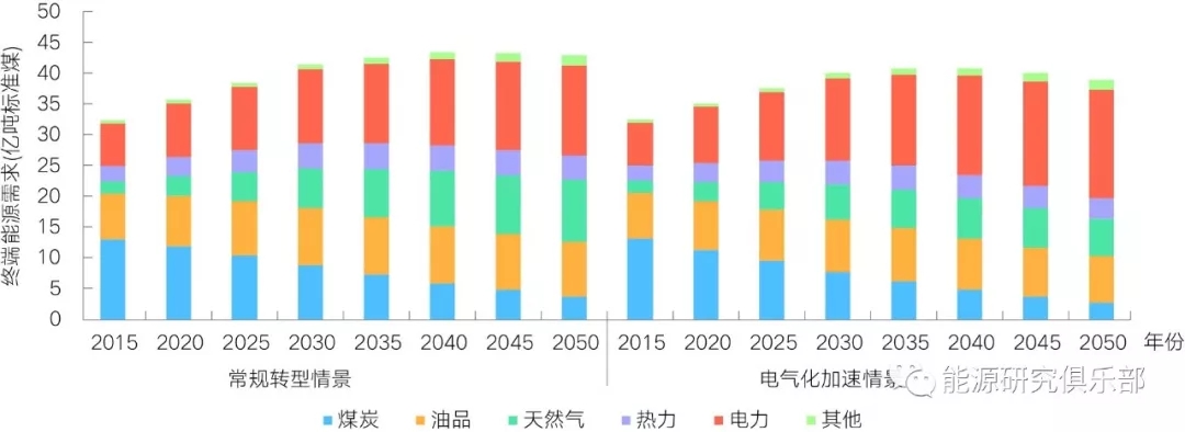 國(guó)網(wǎng)能源研究院基于能源和電力領(lǐng)域的長(zhǎng)期研究,借助自主開發(fā)的全球能源研究統(tǒng)一平臺(tái),以新時(shí)代能源革命的戰(zhàn)略思想為引領(lǐng),立足于能源中長(zhǎng)期發(fā)展方向、發(fā)展方式、發(fā)展動(dòng)力、戰(zhàn)略步驟深刻調(diào)整的新格局,采用源-網(wǎng)-荷-儲(chǔ)協(xié)調(diào)等新理論和現(xiàn)代分析決策新技術(shù),研判了中國(guó)能源和電力到2050年的轉(zhuǎn)型發(fā)展趨勢(shì),以期為中國(guó)能源電力發(fā)展的中長(zhǎng)期路徑選擇提供參考。研究設(shè)置了各類轉(zhuǎn)型措施實(shí)施力度相對(duì)平衡的常規(guī)轉(zhuǎn)型情景和電氣化水平更快提升的電氣化加速情景,在兩個(gè)情景下分別進(jìn)行能源電力發(fā)展展望。