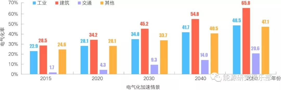 圖6 各部門電氣化水平