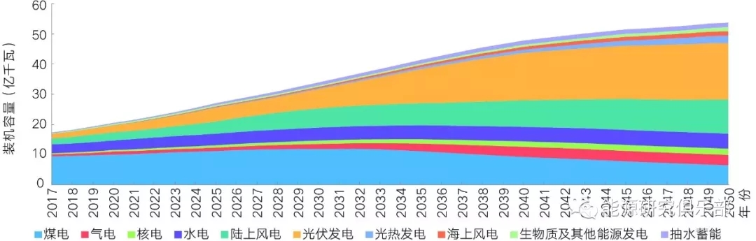 三是電源發(fā)展呈現(xiàn)“風(fēng)光領(lǐng)跑、多源協(xié)調(diào)”態(tài)勢(shì)。陸上風(fēng)電、光伏發(fā)電將是發(fā)展速度最快的電源,2030年、2050年兩者總裝機(jī)容量占比有望超過30%、50%。氣電受成本因素制約,增長(zhǎng)空間有限,2030年、2050年的優(yōu)化裝機(jī)容量將分別達(dá)到1.8億千瓦、3.7億千瓦左右。核電發(fā)展受到站址與建設(shè)速度等因素影響,預(yù)計(jì)2030年、2050年的裝機(jī)容量將分別達(dá)到1.2億千瓦、2.2億千瓦左右。水電可開發(fā)潛力已相對(duì)有限,預(yù)計(jì)2030年、2050年裝機(jī)容量將分別達(dá)到4.6億千瓦、5.4億千瓦左右。煤電將逐步轉(zhuǎn)變?yōu)榫哂猩疃日{(diào)節(jié)能力的容量支撐電源,2030年、2050年裝機(jī)容量預(yù)計(jì)將達(dá)12億千瓦、7億千瓦左右。除風(fēng)電、光伏發(fā)電外各類電源雖然裝機(jī)容量增長(zhǎng)有限,但都將在電力系統(tǒng)中發(fā)揮重要作用,在波動(dòng)性電源大規(guī)模發(fā)展的情況下保障電力系統(tǒng)的電力電量平衡與調(diào)峰靈活性,各類電源呈現(xiàn)協(xié)調(diào)發(fā)展態(tài)勢(shì)。