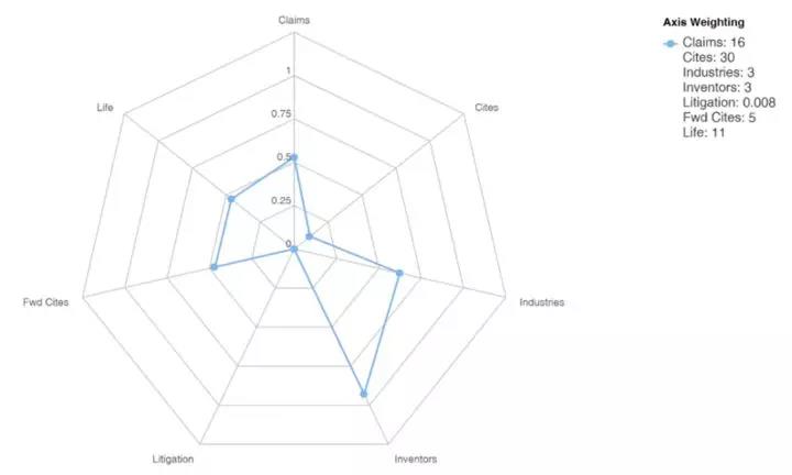 Innography專利強(qiáng)度指標(biāo)參考了10余個(gè)專利價(jià)值的相關(guān)指標(biāo),包括:專利權(quán)利要求數(shù)量、引用先前技術(shù)文獻(xiàn)數(shù)量、專利被引用次數(shù)、專利及專利申請案的家族、專利申請時(shí)程、專利年齡、專利訴訟等,如果一件專利強(qiáng)度越高,可以確定該專利的質(zhì)量和影響力越高。