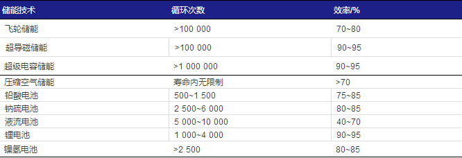 風(fēng)電和光伏發(fā)電的出力波動在任何時候都可能發(fā)生,在目前的新能源發(fā)電預(yù)測水平下,難以實現(xiàn)分鐘級甚至秒級的風(fēng)、光發(fā)電出力精確預(yù)測。因此,需要能夠快速響應(yīng)的儲能技術(shù)。表1羅列了幾種典型的儲能技術(shù)。