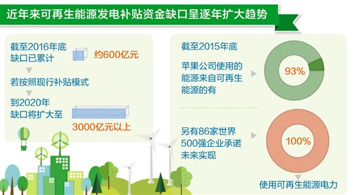 “綠證交易今后會是一個(gè)趨勢,因?yàn)榭稍偕茉囱a(bǔ)貼愈發(fā)捉襟見肘?!币总S春介紹說,目前我國可再生能源發(fā)電補(bǔ)貼資金來源單一,均來自電價(jià)附加征收。近年來補(bǔ)貼資金缺口呈逐年擴(kuò)大趨勢。截至2016年底,缺口已累計(jì)約600億元;若按照現(xiàn)行補(bǔ)貼模式,到2020年缺口將擴(kuò)大至3000億元以上。目前國家在努力降低實(shí)體經(jīng)濟(jì)成本,大幅提高電價(jià)附加標(biāo)準(zhǔn)并不現(xiàn)實(shí)。