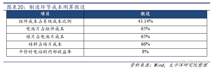 平價上網(wǎng)時各制造環(huán)節(jié)成本測算