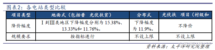 通知中一個最大的變化是電價的調(diào)價時間窗口,明確自2019年起,納入財(cái)政補(bǔ)貼年度規(guī)模管理的光伏發(fā)電項(xiàng)目全部按投運(yùn)時間執(zhí)行對應(yīng)的標(biāo)桿電價。也就是說,從2019年開始將沒有630搶裝的概念,調(diào)價的時間窗口將全部集中在年末。這也意味著進(jìn)入2018年的年度規(guī)模管理的光伏發(fā)電項(xiàng)目只有在2018年年底并網(wǎng)投運(yùn)才能享受2018年的電價補(bǔ)貼政策,我們認(rèn)為此舉會加速進(jìn)入2018年管理指標(biāo)的光伏項(xiàng)目的并網(wǎng)速度,2018年的普通地面的裝機(jī)需求或?qū)⒊绞袌鲱A(yù)期。