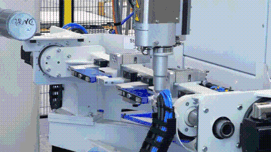 將電芯傳送到制定位置,機(jī)械手自動(dòng)抓取送入模組裝配線。