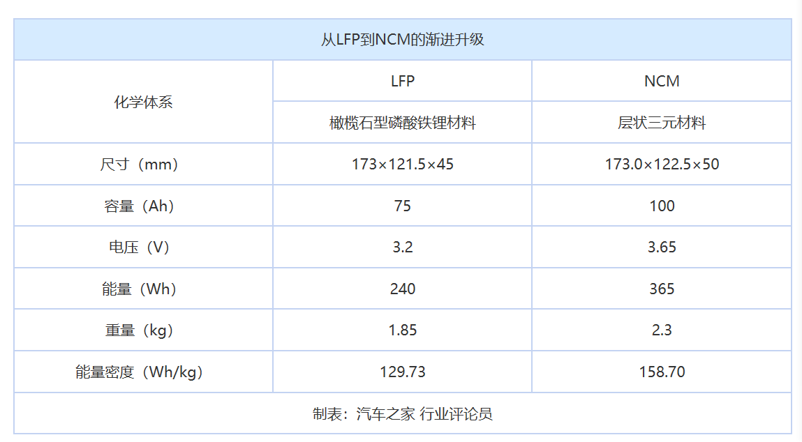 從實際應用上來說,比亞迪是在電池尺寸規(guī)格大體不變的情況下,通過調(diào)整化學體系實現(xiàn)容量上升。