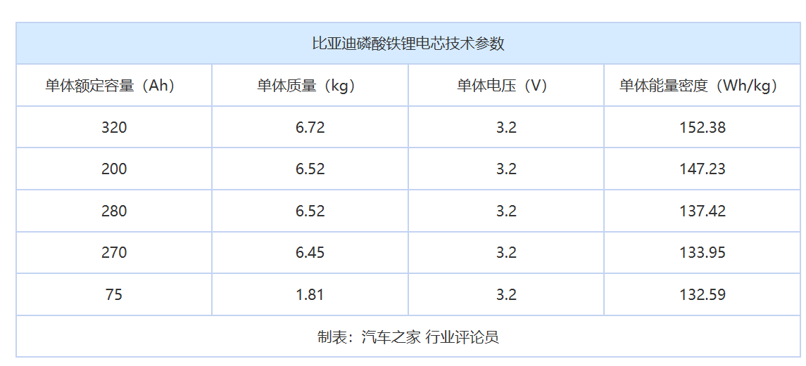 比亞迪在磷酸鐵鋰的技術(shù)路線上堅守比較久,從而也暴露了其在電池材料體系側(cè)重點切換較慢的一個弱點。由于之前執(zhí)著于用磷酸鐵鋰電芯,比亞迪在補貼政策要求的能耗和能量密度上都吃了不少虧。如下表所示,比亞迪的主要思路是通過做大電芯來實現(xiàn)單體的更高能量密度,所以做到了300Ah這樣的規(guī)格;而在乘用車上采用75Ah電芯并聯(lián)的方式,總體的效率并不高。