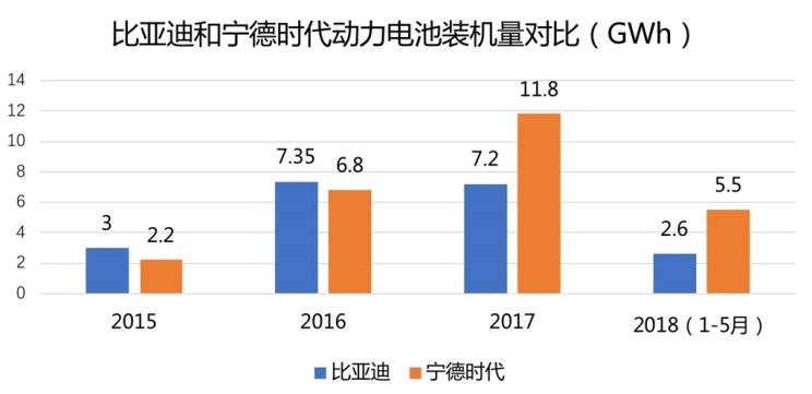 從目前中國動力電池市場的占比情況來看,已經(jīng)形成了寧德時代和比亞迪的雙龍頭格局。考慮到企業(yè)的整體規(guī)模和后續(xù)潛力,如果比亞迪的動力電池業(yè)務(wù)局限在集團內(nèi)供,與寧德時代的規(guī)模差距將會越拉越大。過去比亞迪曾牢牢占據(jù)國內(nèi)動力電池榜首,但從2017年開始被寧德時代超越。2018年1-5月,比亞迪動力電池裝機量為2.55GWh,而寧德時代已經(jīng)達到5.46GWh。往后隨著新能源汽車補貼的進一步退坡,電池成本和整車的周轉(zhuǎn)資金對比亞迪來說是個巨大的挑戰(zhàn),從多個層面考慮,比亞迪動力電池業(yè)務(wù)獨立和開放也是不得不做的事情。