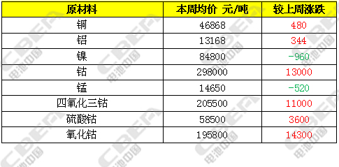 四氧化三鈷本周表現(xiàn)較強(qiáng)勢,廠家仍在不斷上調(diào)價(jià)格,但下游接單意愿不是很強(qiáng),部分廠家仍持觀望態(tài)度。目前,四氧化三鈷價(jià)格在20.2-21萬元/噸,均價(jià)較上周上漲1.1萬元/噸。氧化鈷廠家表示近期原料供應(yīng)緊張,市場多處于滿產(chǎn)狀態(tài),廠家報(bào)價(jià)上調(diào),市場出貨意愿不強(qiáng)。目前,氧化鈷報(bào)價(jià)在19.5-19.8萬元/噸,均價(jià)較上周上漲1.43萬元/噸。市場預(yù)期短時(shí)間內(nèi)仍處于漲勢。