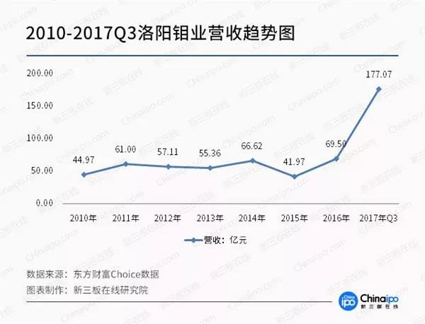 洛陽(yáng)鉬業(yè)的財(cái)報(bào)數(shù)據(jù)顯示,2010年洛陽(yáng)鉬業(yè)全年?duì)I收約44.97億元,而截至2017年三季度洛陽(yáng)鉬業(yè)的營(yíng)收已經(jīng)達(dá)到177億元,2017全年突破220億元應(yīng)無(wú)懸念??瓷先?年?duì)I收增長(zhǎng)近4倍,成績(jī)相當(dāng)優(yōu)秀,但仔細(xì)扒開(kāi)研究,就能發(fā)現(xiàn)業(yè)績(jī)真正的拐點(diǎn)是在今年年初,影響業(yè)績(jī)大幅提升一方面來(lái)自于收購(gòu)剛果金的鈷礦,另一方面與鈷價(jià)爆發(fā)也有直接的關(guān)系。所以雙因素的推動(dòng)下,我們看到,2017年的業(yè)績(jī)翻倍上漲。