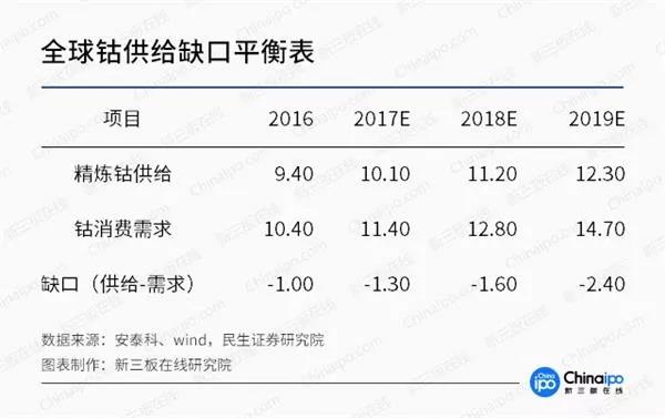 從產(chǎn)業(yè)鏈角度看,短期內(nèi)鈷礦擴(kuò)產(chǎn)的能力不及下游需求的爆發(fā)力強(qiáng)。首先,在鈷礦方面被少數(shù)巨頭掌握,對(duì)下游的議價(jià)能力強(qiáng)勁。但是下游的需求擴(kuò)張已經(jīng)來(lái)臨,這一快一慢對(duì)比之下,鈷的供需極度不平衡。根據(jù)民生證券研究院的預(yù)測(cè),2017至2019年的供給缺口分別將達(dá)1.3萬(wàn)噸、1.6萬(wàn)噸和2.4萬(wàn)噸。