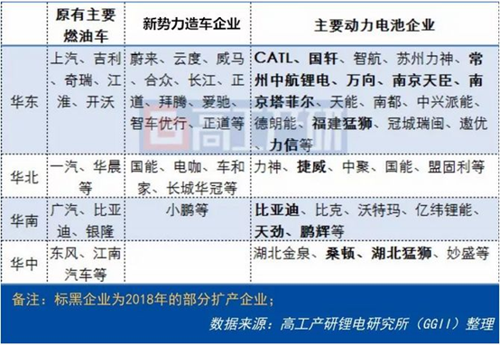 動(dòng)力電池作為汽車的核心部件,以圍繞車企建廠為核心的趨勢(shì)明顯。華南地區(qū)3C電子、數(shù)碼家電等發(fā)達(dá),但汽車產(chǎn)業(yè)發(fā)達(dá)程度低于華東等地區(qū)。從新勢(shì)力造車企業(yè)的產(chǎn)能布局來看,也集中分布在華東地區(qū),因此動(dòng)力電池?cái)U(kuò)產(chǎn)仍以華東、華北等地區(qū)為主。