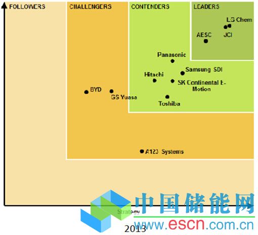 在整個鋰電池行業(yè)中,處于領先地位的也寥寥數(shù)家,而從2012年到2015年數(shù)據(jù)分析可見,各大鋰電企業(yè)波動起伏很大。如圖表1顯示,有些企業(yè)一直保持著領導者地位,比如LG:一往無前,繼續(xù)在戰(zhàn)略和執(zhí)行兩塊有奮進;三星SDI:從與SB LiMotive這邊邊緣化的角色一步步走入核心圈;BYD:從挑戰(zhàn)者變成了跟隨著。而一部分企業(yè)卻在不斷進步,光芒閃耀。比如Lishen +Amperax+ Microvast:依靠國內(nèi)的需求拉起來了;Hitachi:在混動的領域繼續(xù)開拓。但是,另外一部分企業(yè)因為諸多原因,卻在一步步走下坡路,比如A123被中國萬向集團收購后,到2015年沒有了;JCI 離LG最近,只能依靠48V系統(tǒng)翻身。
