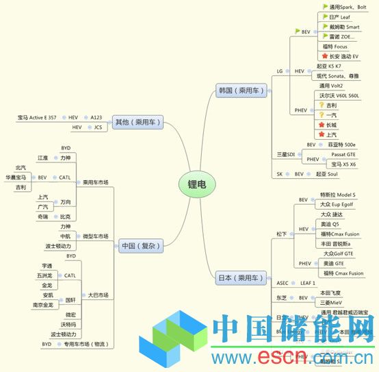 從圖表3可以看出,雖然韓日在乘用車比較專一,車載電池卻不專注于BEV、HEV、PHEV等任何一種電動車類型。韓國的LG、三星主導著世界主要電動車型,很顯然,韓國兩家LG和三星,敞開門做生意,沒有與整車企業(yè)建立強的投資關系,把生產(chǎn)能力輻射到美國、歐洲和中國,這個對于電動汽車的配套太關鍵了;日本通過產(chǎn)業(yè)整合,涌現(xiàn)出一些在技術和規(guī)模方面都具有超強控制力的、(上)中下游一體化的產(chǎn)業(yè)聯(lián)盟;而中國,車載電池一般只供給國內(nèi)部分整車企業(yè)使用,在乘用車市場和大巴市場,顯得非常活躍。