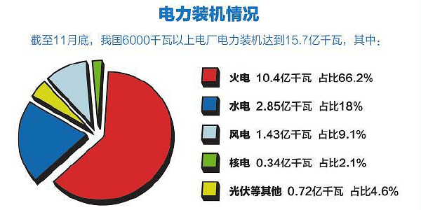10月份以來,《電力發(fā)展 “十三五”規(guī)劃》出臺,成為首個公布的“十三五”能源專項規(guī)劃。預計到2020年,發(fā)電裝機容量達到20億千瓦。屆時非化石能源發(fā)電裝機達到7.7億千瓦左右,發(fā)電量占比提至31%。煤電裝機力爭控制在11億千瓦以內(nèi)。