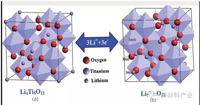 (a)圖為在放電態(tài)的鈦酸鋰晶胞,其中小球為Li原子在8a四面體位;(b)圖為在充電態(tài)的鈦酸鋰晶胞,其中Li在16c八面體位。圖中大球形為氧原子,中球為鈦原子位于每個八面體位的中心。