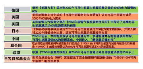 以上是世界各國在能源轉(zhuǎn)型上的一些規(guī)劃目標(biāo),可以看出,普及可再生能源是全球?qū)崿F(xiàn)低碳能源轉(zhuǎn)型的關(guān)鍵。預(yù)計2030年以后,整個能源結(jié)構(gòu)當(dāng)中,可再生能源將會占主導(dǎo)。早在2004年的一次報告中我提出過:可再生能源正逐漸由輔助能源變?yōu)橹鲗?dǎo)能源。至今我仍然堅持這一觀點。