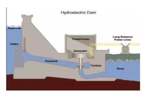 發(fā)電:在用電高峰期,釋放高位水庫中的水,勢能轉(zhuǎn)化為電能。