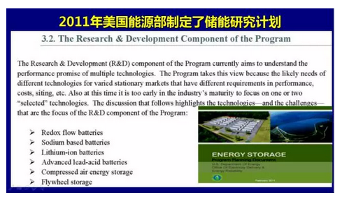 上圖是美國能源部2011年發(fā)布的美國能源部儲能規(guī)劃,圖中可以看出他們支持哪些電池。