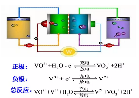 原理:利用釩離子價態(tài)變化,實現(xiàn)電能儲存和釋放