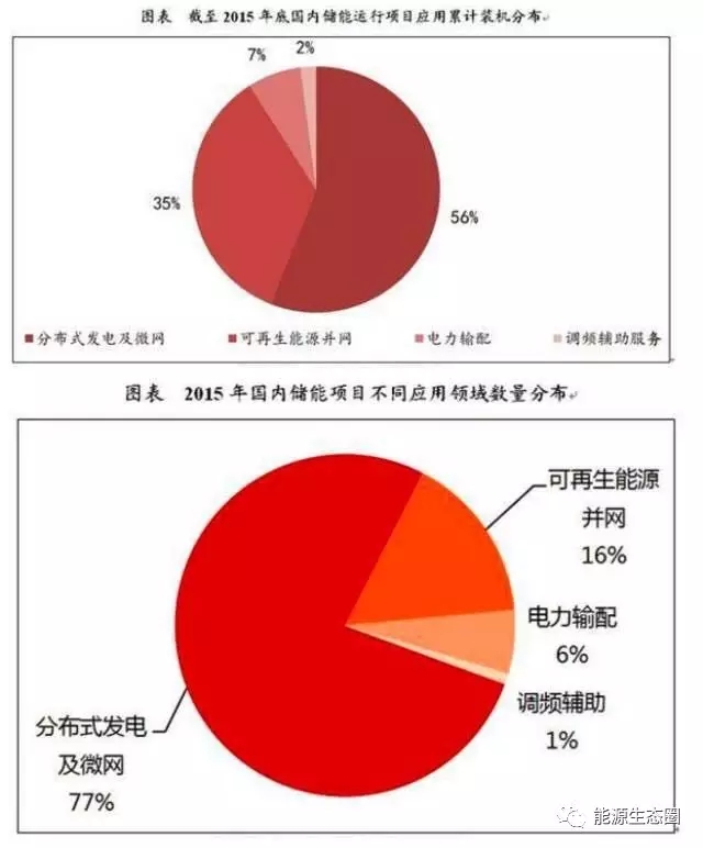 目前,國(guó)內(nèi)的儲(chǔ)能市場(chǎng)主要分為兩類(lèi),一類(lèi)是用戶(hù)端分布式發(fā)電及微電網(wǎng)中儲(chǔ)能的應(yīng)用,占比大約為56%,另一類(lèi)是集中式風(fēng)光電站(可再生能源并網(wǎng))儲(chǔ)能應(yīng)用,占比約為35%,目前兩者累計(jì)裝機(jī)規(guī)模已超過(guò)國(guó)內(nèi)市場(chǎng)的90%,電力輸配和調(diào)頻輔助服務(wù)占到9%左右的市場(chǎng)份額。