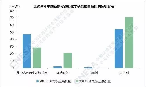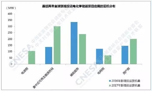 從應(yīng)用分布上看,新增投運(yùn)項(xiàng)目全部應(yīng)用在集中式可再生能源并網(wǎng)、輔助服務(wù)和用戶側(cè)領(lǐng)域。其中,用戶側(cè)領(lǐng)域的功率規(guī)模最大,超過70MW,輔助服務(wù)領(lǐng)域的同比增速最大,接近1000%。